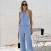 Commuter Off-the-Shoulder V-Neck Vest and Long Pants Two-Piece Set Design Cotton Linen Sleeveless Tank Top Suit